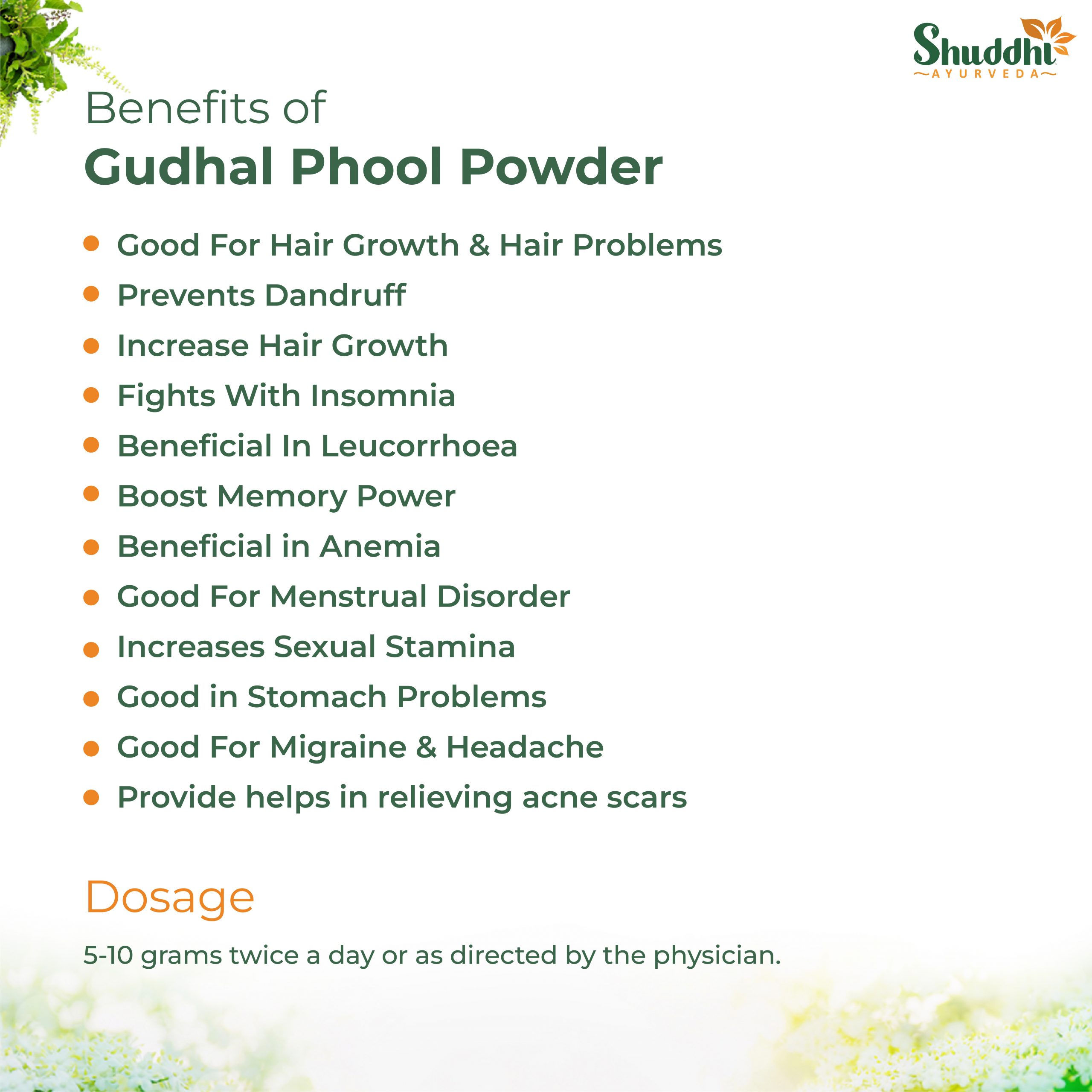 Gudhal Phool Powder is made up of Gudhal (Hibiscus-rosa-Sinensis Linn). It is a perfect ayurvedic remedy for various problems such as hair fall, insomnia, Leucorrhoea, sexual problems, stomach problems, etc. It is an ayurvedic remedy and therefore it has no side effects on the body. It helps in maintaining cholesterol levels and helps in preventing the freezing of arteries.