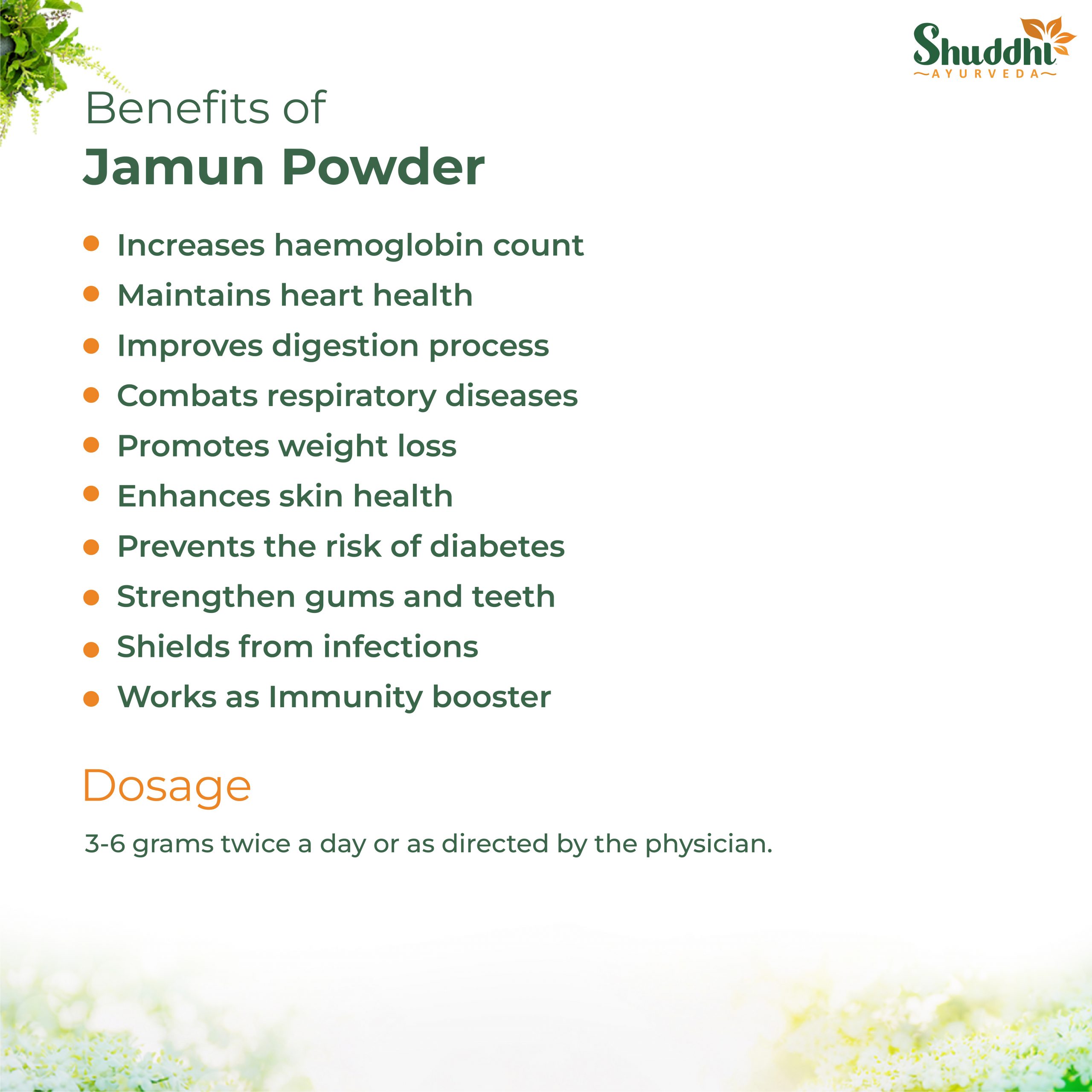 Jamun is an essential ingredient in Ayurveda that is loaded with fructose and glucose. This ayurvedic ingredient is rich in antioxidants, flavonoids, folic acid, proteins, phosphorus, and much more. This ingredient helps to enhance your health from the inside out. It improves the digestion process and helps in weight loss. The beneficial compounds present in the Jamun can enhance cardiovascular health too.