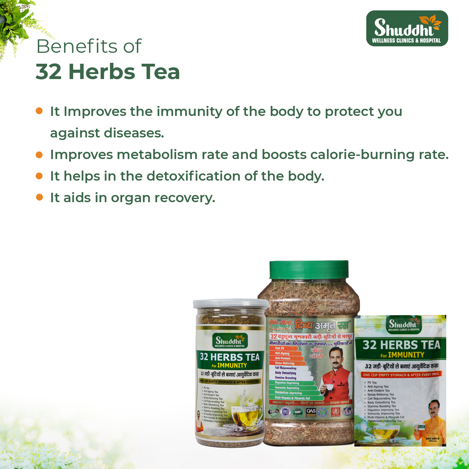 32 herbs tea is beneficial for overall health. It is 100% ayurvedic herbal tea and is helpful in various health problems. As we know, immunity is the ability of the human body to resist harmful microorganisms from entering it. With this tea, one can increase immunity naturally.