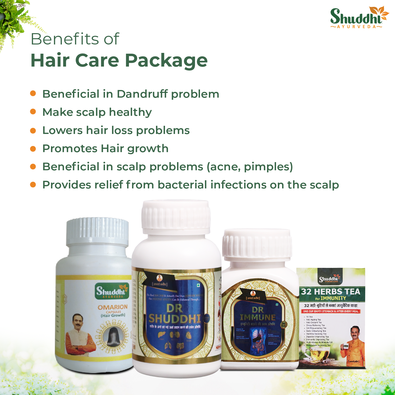 Hair Care Package is an ayurvedic package that helps in providing relief from hair problems such as dandruff, hair fall, scalp problems etc. The package also helps in promoting hair growth and is beneficial in lowering the problem of acne & pimples on the scalp. It also provides relief from bacterial infections on the scalp.