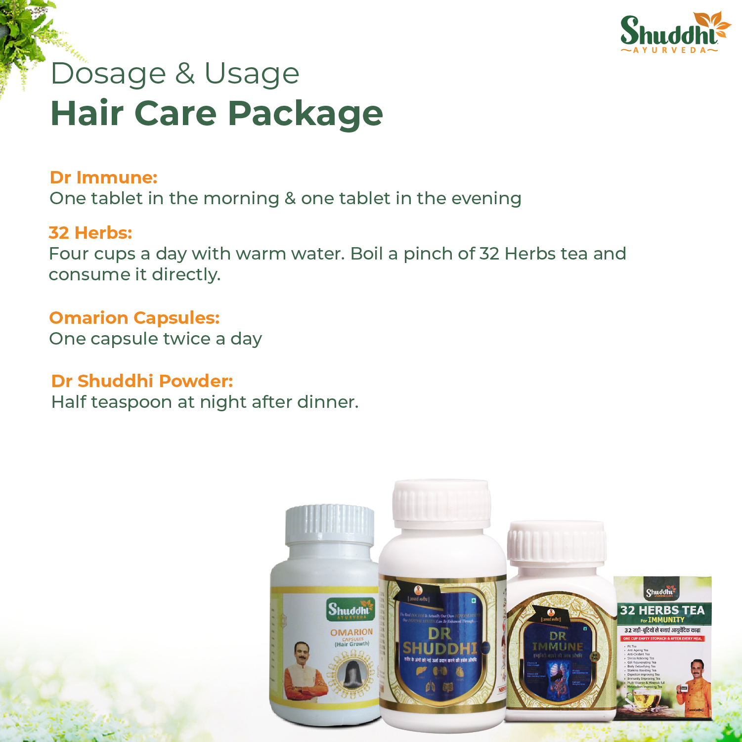 Dr Shuddhi Powder: Half teaspoon at night after dinner.