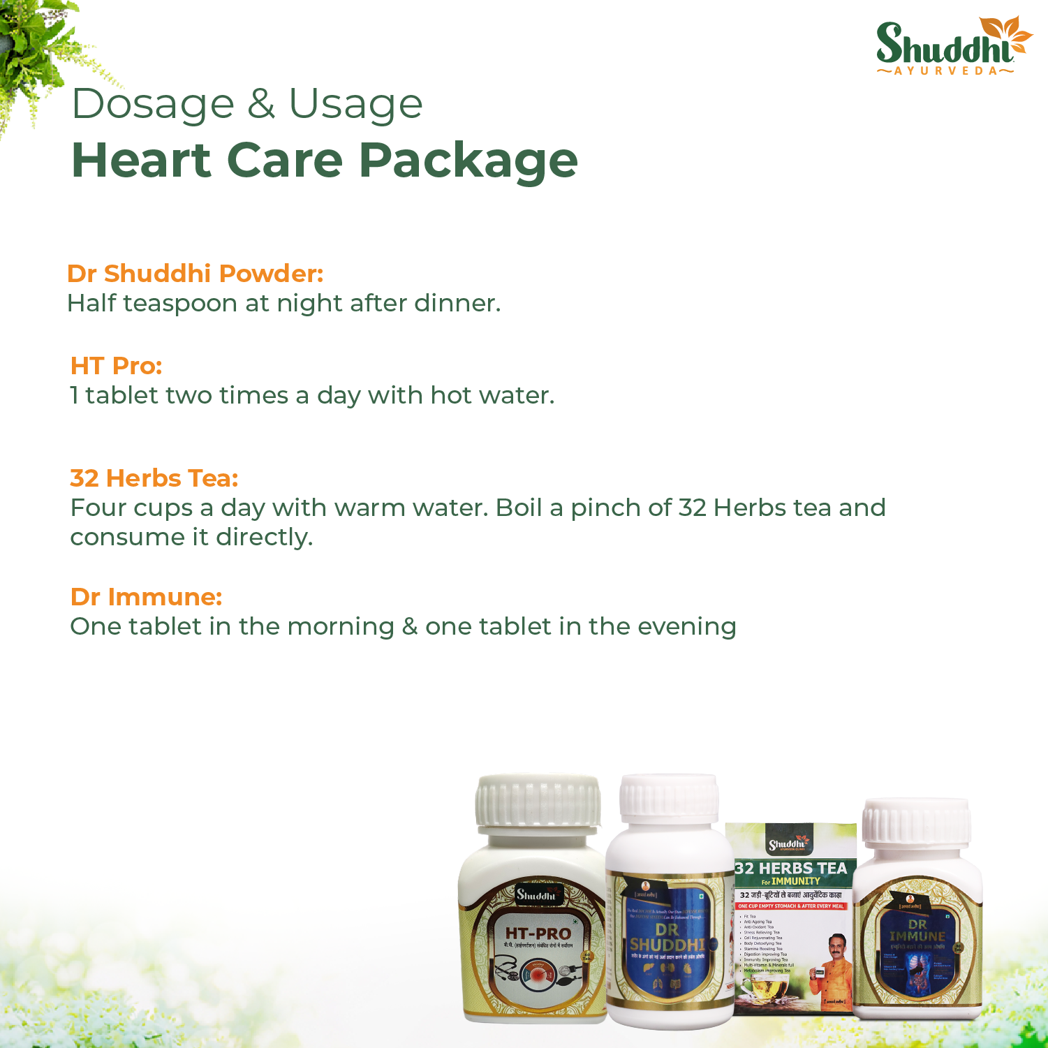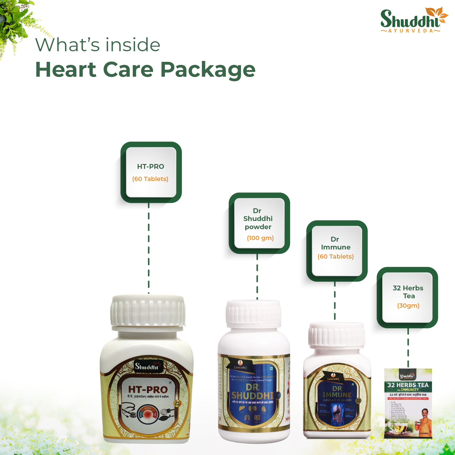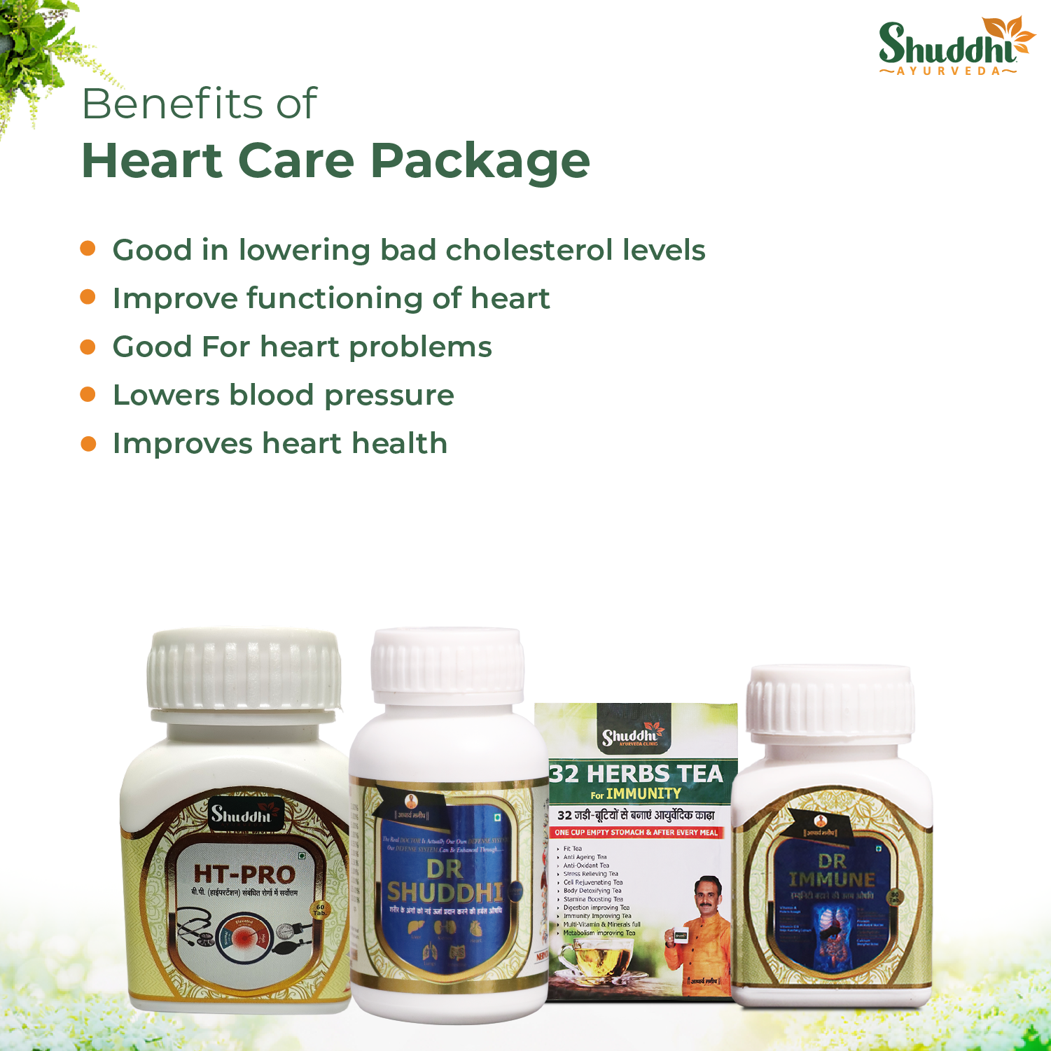 Heart Care Package is a complete ayurvedic package that helps in the heart well being. The package is a mixture of various ayurvedic herbs that are good for heart health. These herbs present in the Shuddhi Heart Care Package also improve heart health and protect it from various problems.