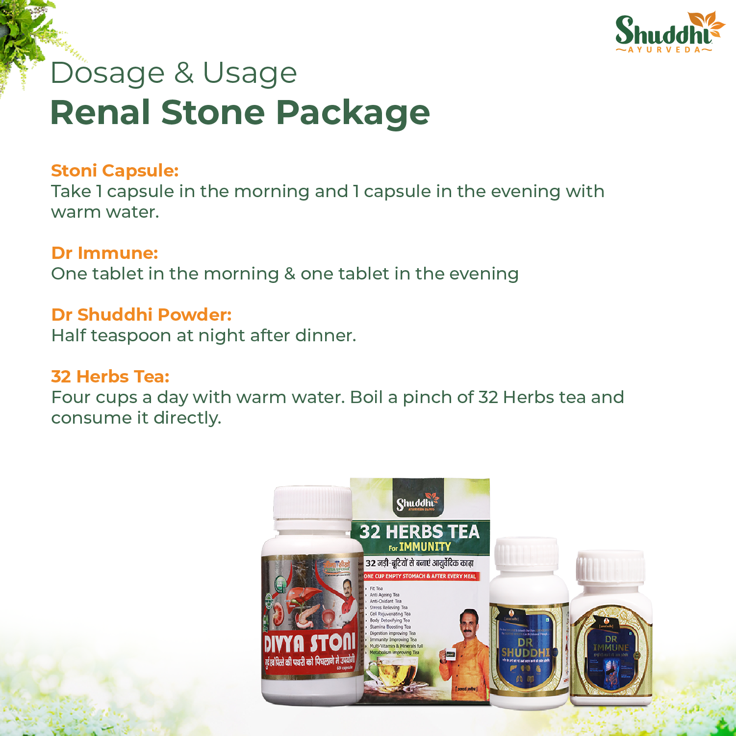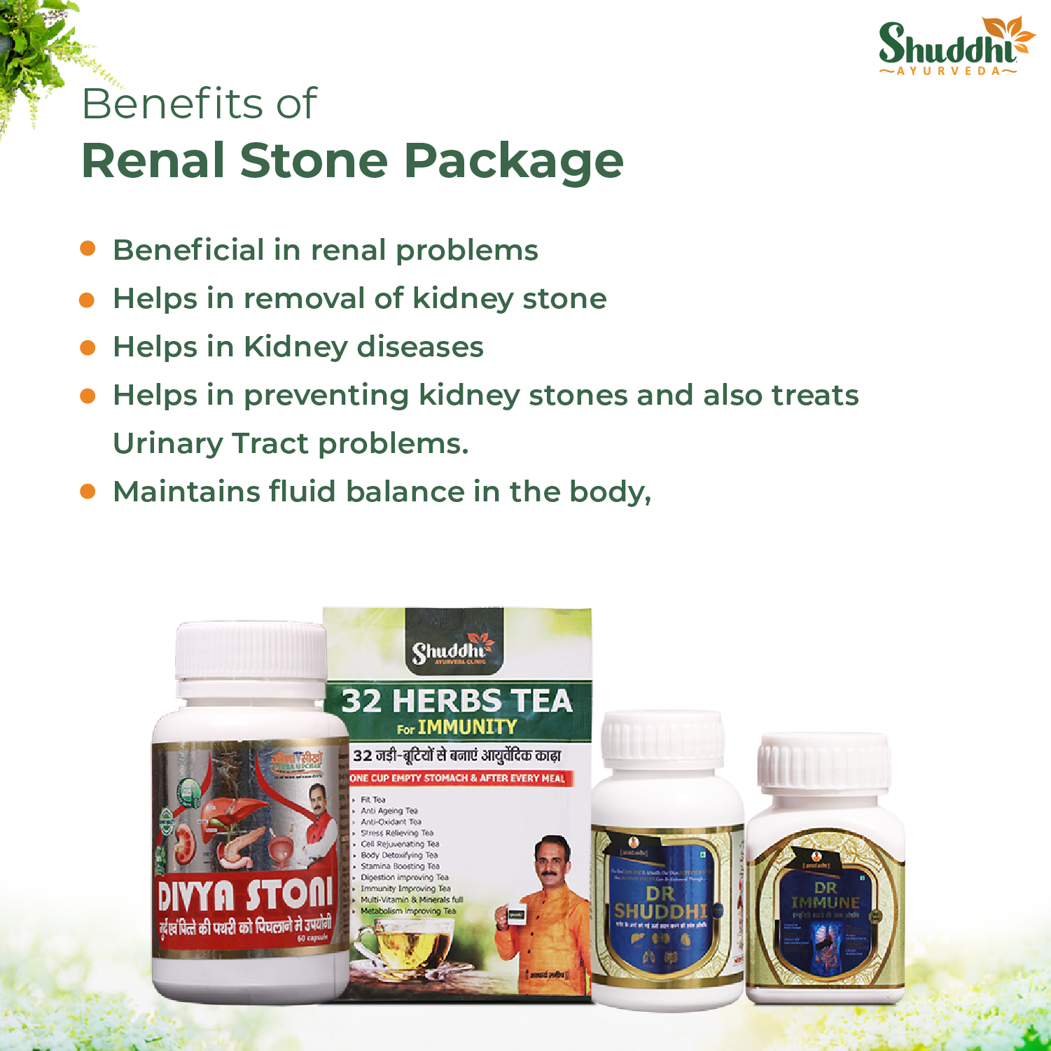 Shuddhi Renal Stone package is an ayurvedic herbal package that helps in the problem of renal stone. Ayurvedic herbs present in the Renal Stone Package are also beneficial in improving kidney health.