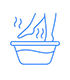 For LLE Therapy, the water is heated at 45 degrees. The patient then keeps the legs soaked in the hot water.